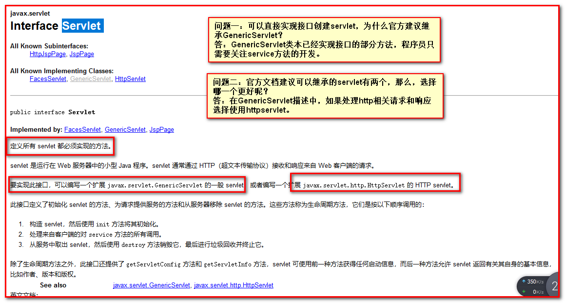 我们先来查阅API回顾Servlet接口:
