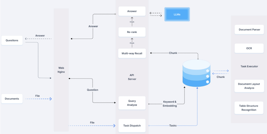 RAGFlow通过自动化文档处理、高效的检索和LLM的集成,大大降低了构建企业级知识库问答系统的门槛