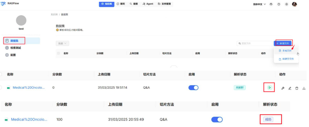比如CSV格式且为QA问答形式,切片方法选择Q&A |