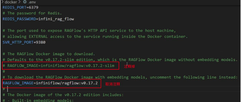 - 在docker/.env 中更新RAGFLOW_IMAGE的变量
