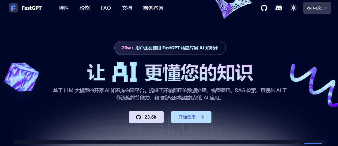 - 基于 LLM 大模型的开源 AI 知识库构建平台。提供了开箱即用的数据处理、模型调用、RAG 检索、可视化 AI 工作流编排等能力,帮助您轻松构建复杂的 AI 应用