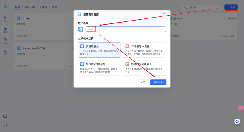 - 登录之后会跳转到他的工作台,在这个工作台中可以创建应用来实现RAG的工作流程