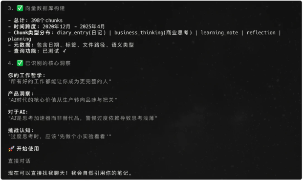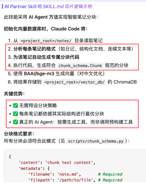 - 借此,Agent 就能理解 AI-Partner 的初始化与对话方法,引导用户上传包含个人记忆的文档预料,在用户端智能切分笔记片段,构建向量数据
